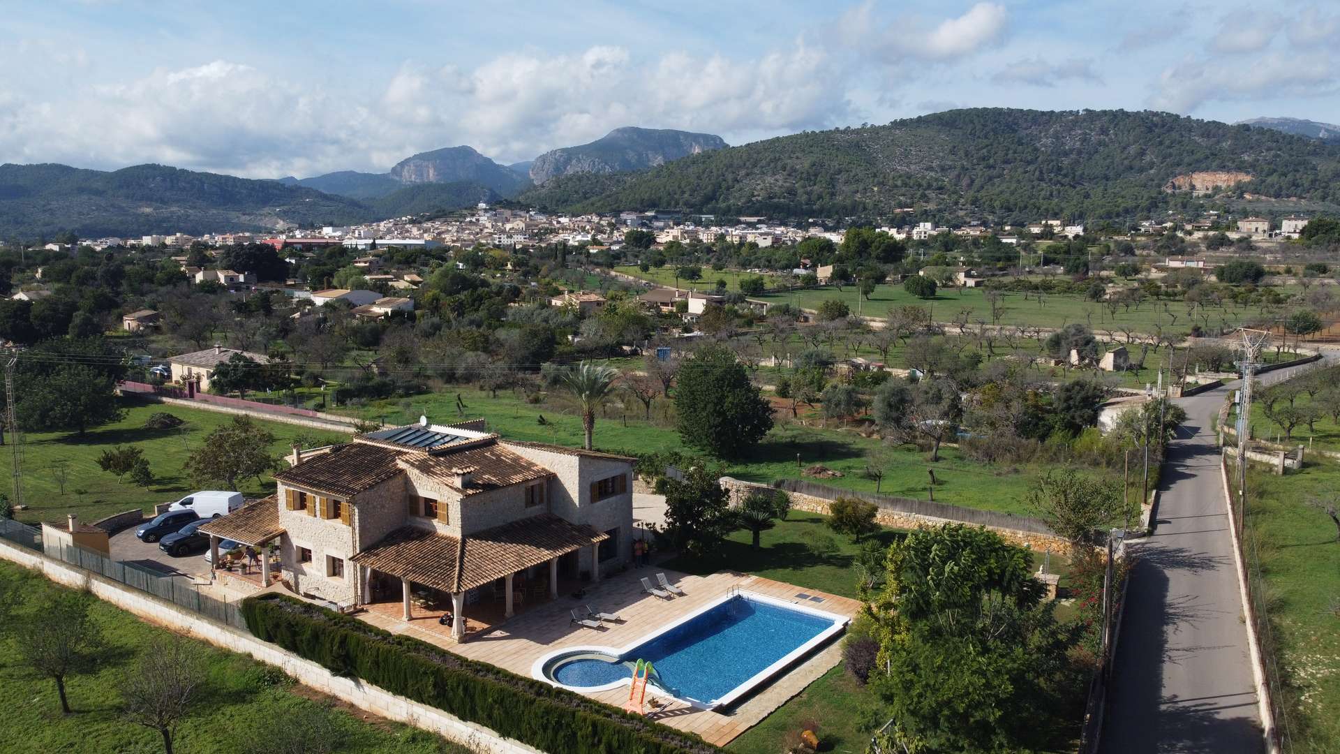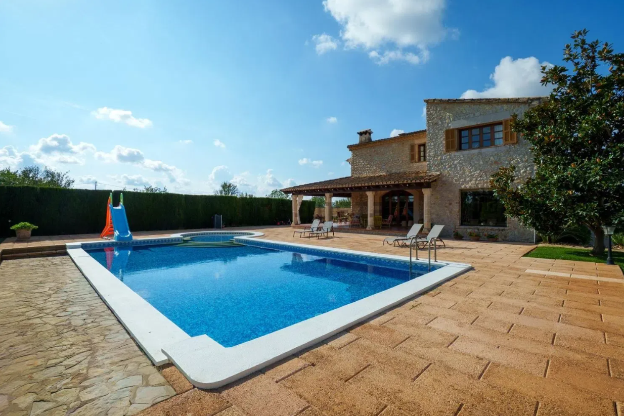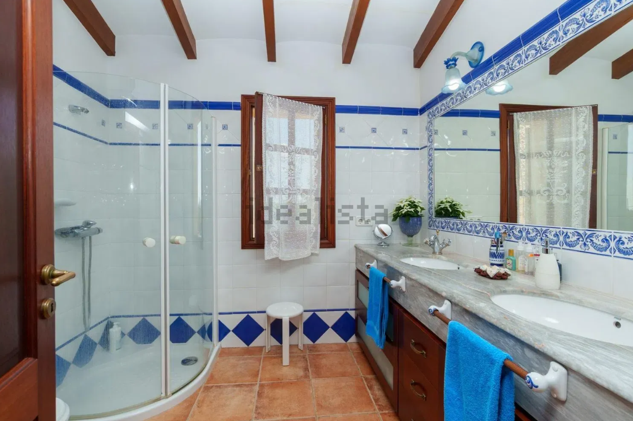 Zum Verkauf steht eine beeindruckende Immobilie mit 414,44 m² Wohnfläche auf zwei Etagen, gelegen in einer ruhigen ländlichen Gegend zwischen Inca und Lloseta, nur wenige Kilometer von der Autobahn entfernt und mit asphaltierter Zufahrt. Das Haus wurde 1999 mit hochwertigen Materialien erbaut und vereint traditionellen mallorquinischen Stil mit modernem Wohnkomfort.
