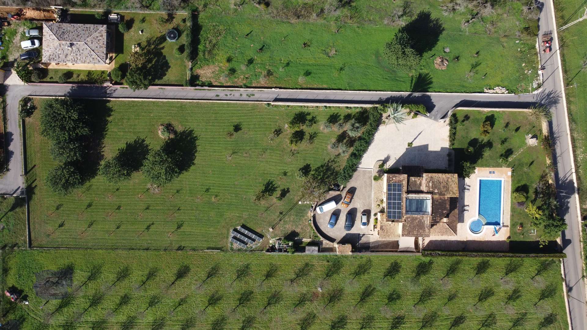 - 6.000 m² großes, rechteckiges Grundstück, komplett eingezäunt, mit Obstbäumen und großzügigen Außenflächen