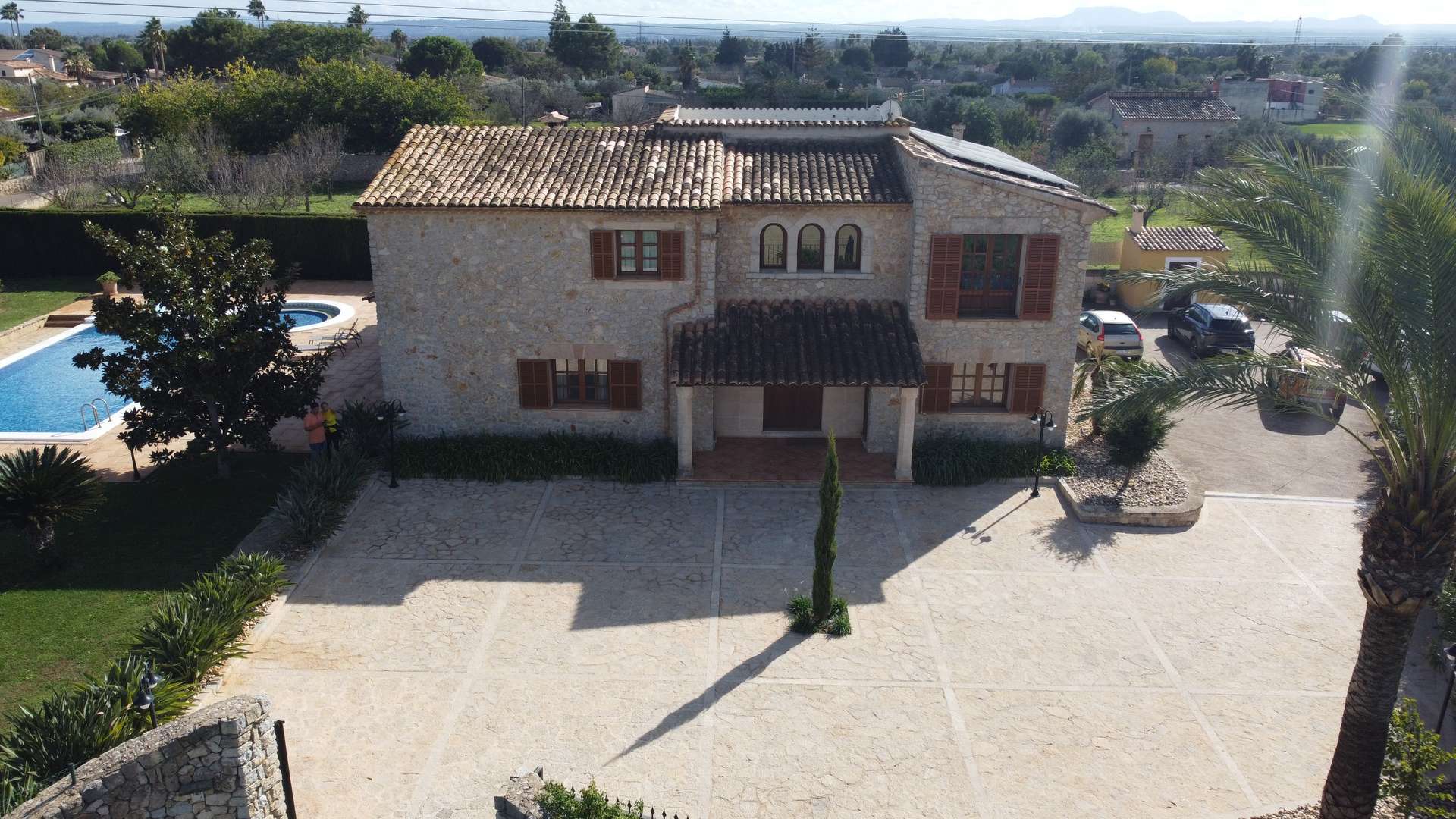 - Haupteingang mit automatischem Tor, Gegensprechanlage und Bodenbelag aus mallorquinischem Naturstein