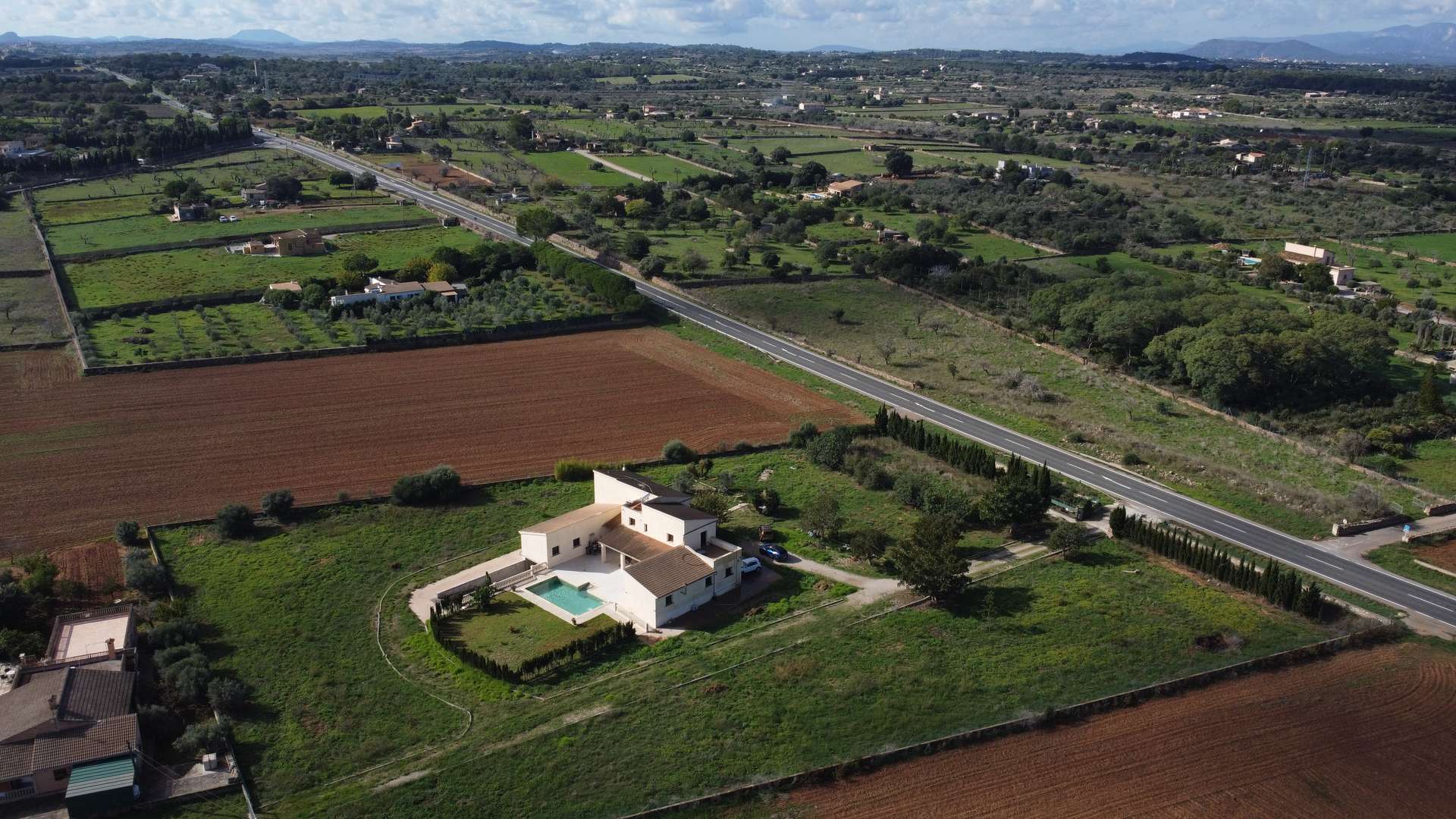 Draußen verfügt die Unterkunft über einen 10 x 5,5 Meter großen Swimmingpool, der sich ideal zum Genießen der natürlichen Umgebung und Ruhe eignet. Obwohl sich das Anwesen neben der Straße befindet, garantiert das Design und die Ausrichtung des Hauses völlige Stille und Privatsphäre im Inneren.